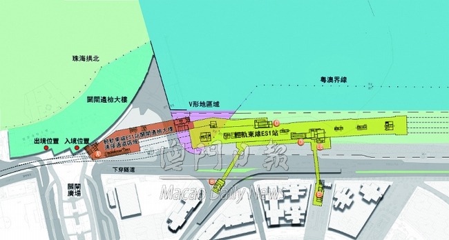 據公共建設局表示,輕軌東線有序推進各項工作,受惠於鄰近關閘的V形地供輕軌東線建設,已將東線ES1站移至更靠近關閘邊檢大樓,通過利用關閘廣場地面和地下空間,興建全天候行人通道連接輕軌東線ES1站和關閘邊檢大樓,為居民及旅客提供舒適和便捷的通行及搭乘環境,亦有助分流地面出入境人流。另外,藉建設全天候通道的時機,通過共構模式,進行盾構隧道延伸至青茂口岸及市民公園的預留工程,為日後輕軌東線延伸線項目啟動創造條件。